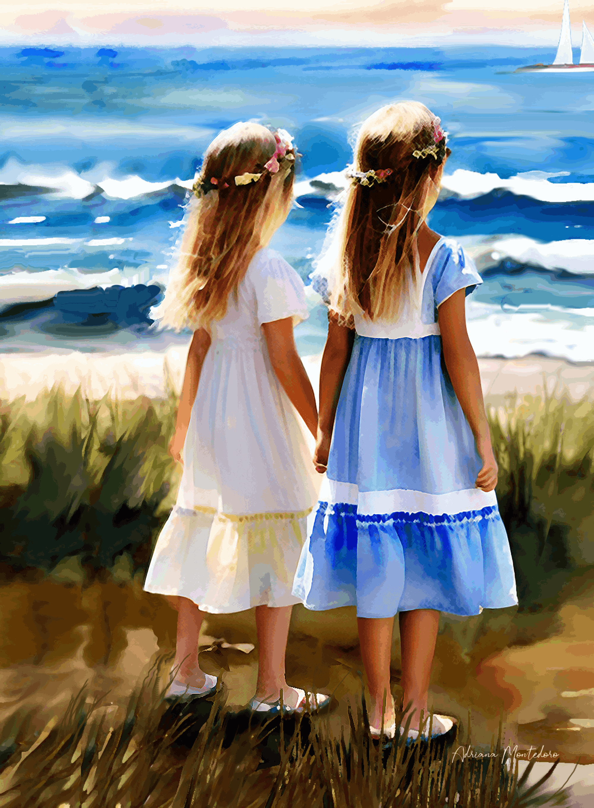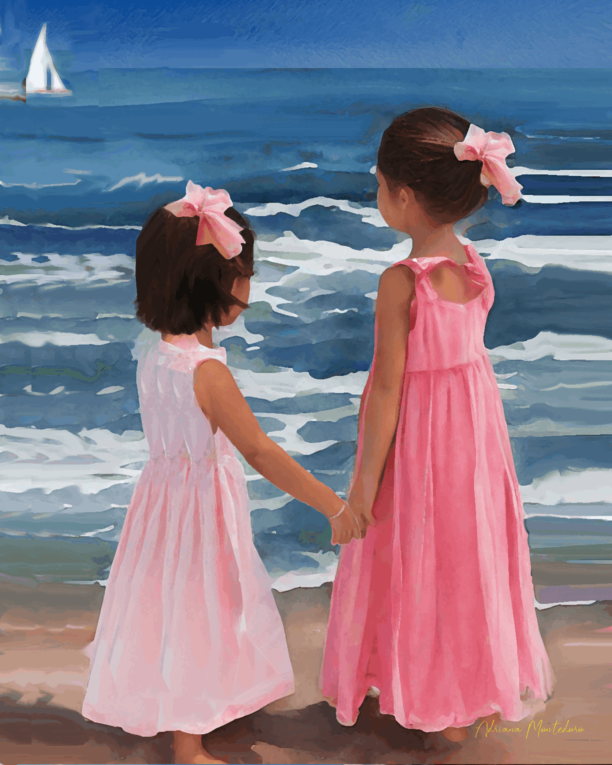 Make your selection even more special! Any print in the Girls Collection can be personalized to add a name or a meaningful message. For select pieces, you even have the option to customize details like hair color or skin tone, creating truly unique artwork that resonates with your family. These girls aren't just decor; they are heirloom-quality pieces that celebrate the fleeting beauty of girlhood.